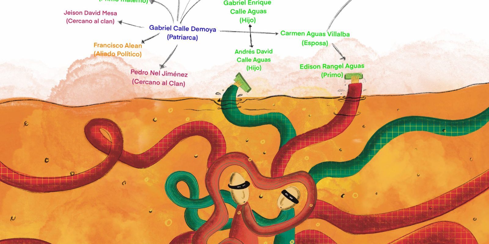José David Cura, el actual alcalde de este municipio, es primo en segundo grado del patriarca Calle. Aunque a ambos los separa ahora una rivalidad política, no siempre fue así. La Fundación Pares documentó que Gabriel Calle Demoya empezó a adquirir poder económico trabajando en una estación de gasolina de su primo César Cura Demoya, luego condenado por narcotráfico en Estados Unidos. La carrera de Calle también se cruzó con la de su primo Mariano Cura Demoya, hermano de César Cura y padre de José David. Entre 2001 y 2003, mientras Gabriel era diputado de Córdoba, Mariano ejercía como alcalde de Montelíbano.